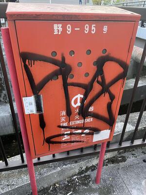 街頭消火器への盗難・破損等を発見した場合は、中野区または最寄りの警察署へ通報してください。