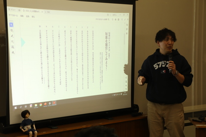 色々な短歌を皆さんで読みながら、短歌の詠み方を学びました。