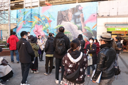 中野サンプラザや中野駅北口周辺のミューラル(壁画)を鑑賞し、歌のタネをさがすときのワンポイントを佐佐木先生よりアドバイスいただきました。