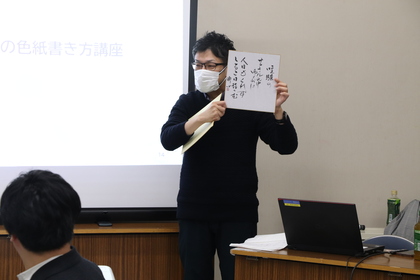 書家の白川鼎心先生による色紙の書き方講座も実施。