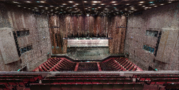 中野のランドマークとして、音楽の殿堂として、多くの方から愛されたこの建物を、文化財としてアーカイブ化するため、外観と建物内部を計測し、3Dモデル化を行いました。