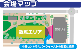 プロジェクションマッピングの技術を活用し、「都心で多くの人が一緒にくつろぐ」「ナイトエコノミーの活性化」という新しい価値観の提案を中心に、子育て先進区の実現、アニメによる観光促進とシビックプライドを醸成する取り組みとして、中野セントラルパークイーストの壁面に、中野区内に本社のある、国内外で著名なアニメ関係企業5社の名作アニメーションを投影するナイトイベントを今年も開催します。