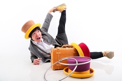 バルーンアート、ジャグリング、テーブルクロス引きなどを使ったコメディー大道芸。