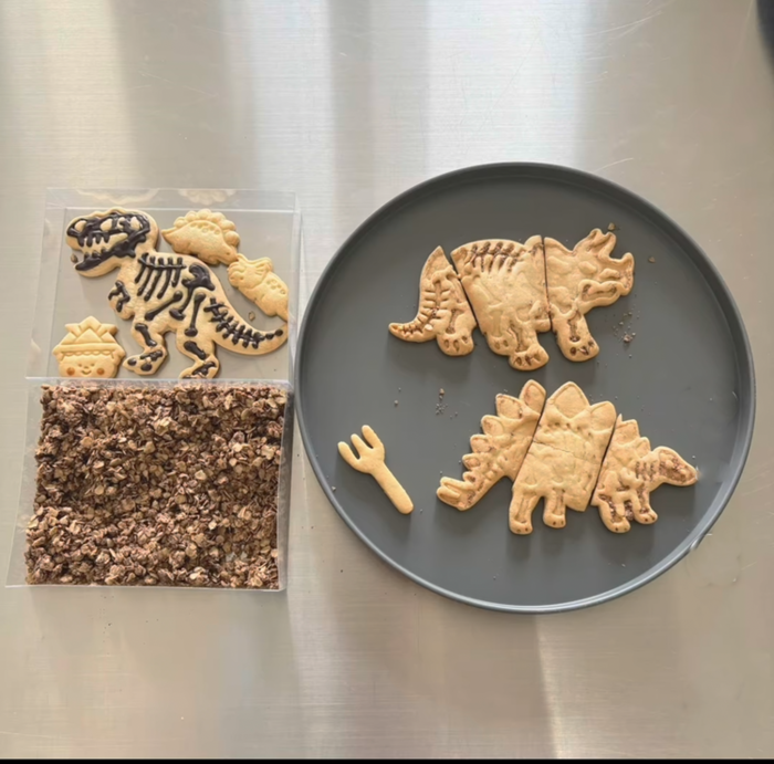 ただのクッキーではなく、グラノーラの中からピースを発掘、つなげていって恐竜を完成させるという遊び心あふれる商品でした。