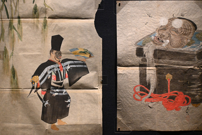 羽衣福の神図屏風 柴田是真筆(嘉永6年・1853年)