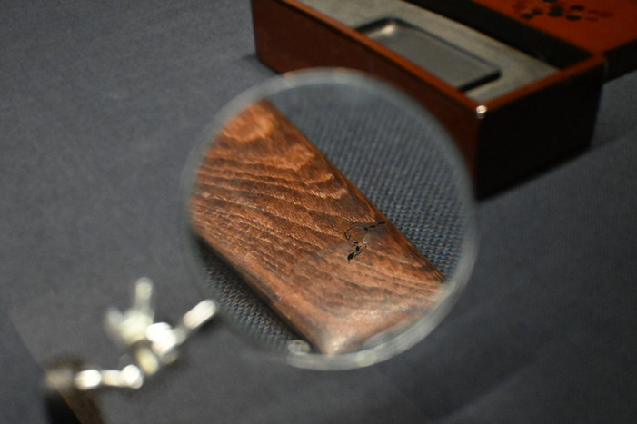 東京黎明アートルームでは作品を主役と考え、鑑賞者が見やすい展示を心がけているそうです。本展でも、是真の細部へのこだわりを堪能できる展示の工夫が随所に見られます。金野さんは「こんなところにこんな仕掛けがあると発見できたなら、是真に近づいたと感じてもらえるのでは」と話します。