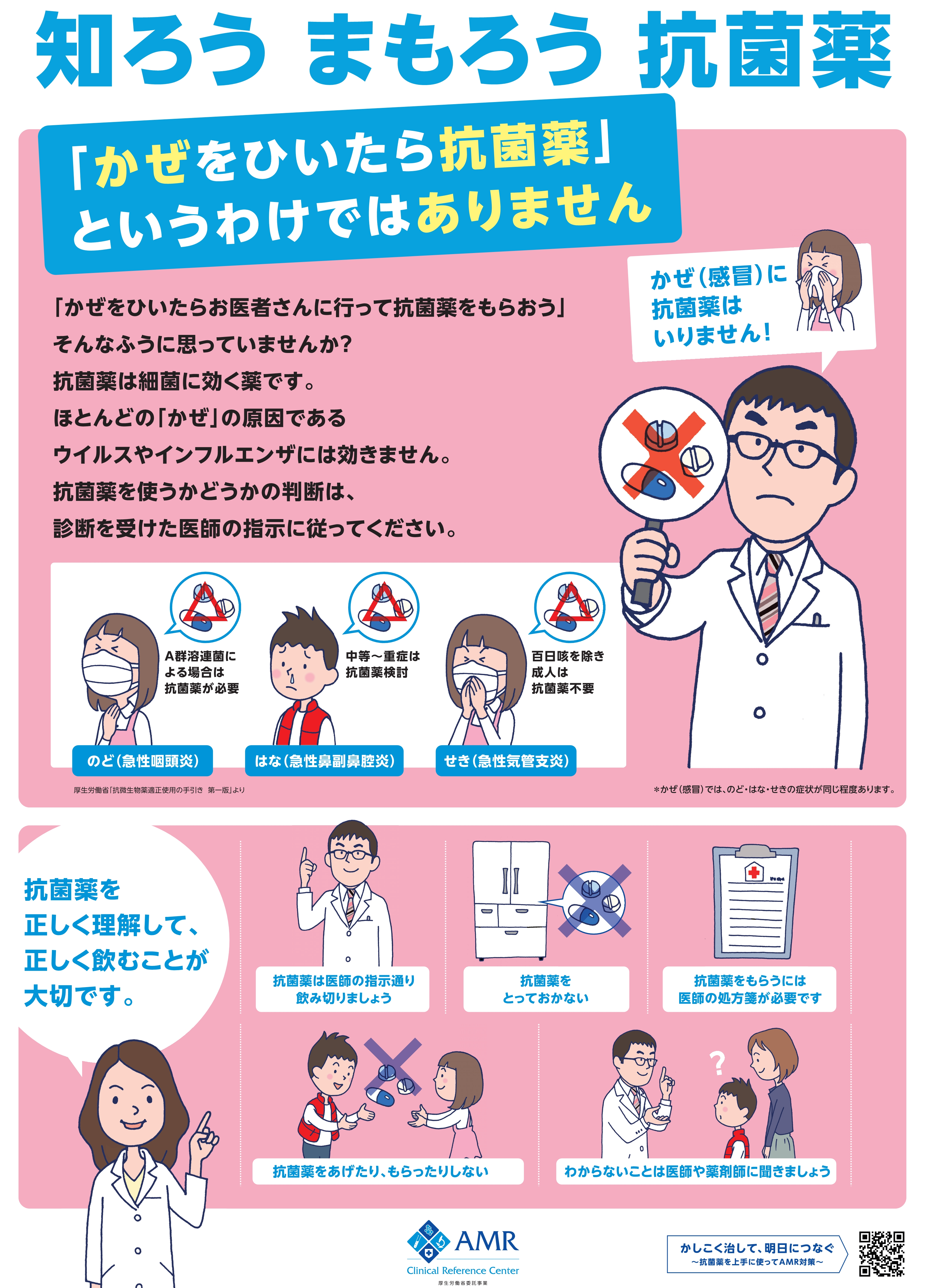 - 風邪の原因の多くはウイルスであり、下記1~4を認識して、安易に抗生物質を使うべきでないことを知ってください。
