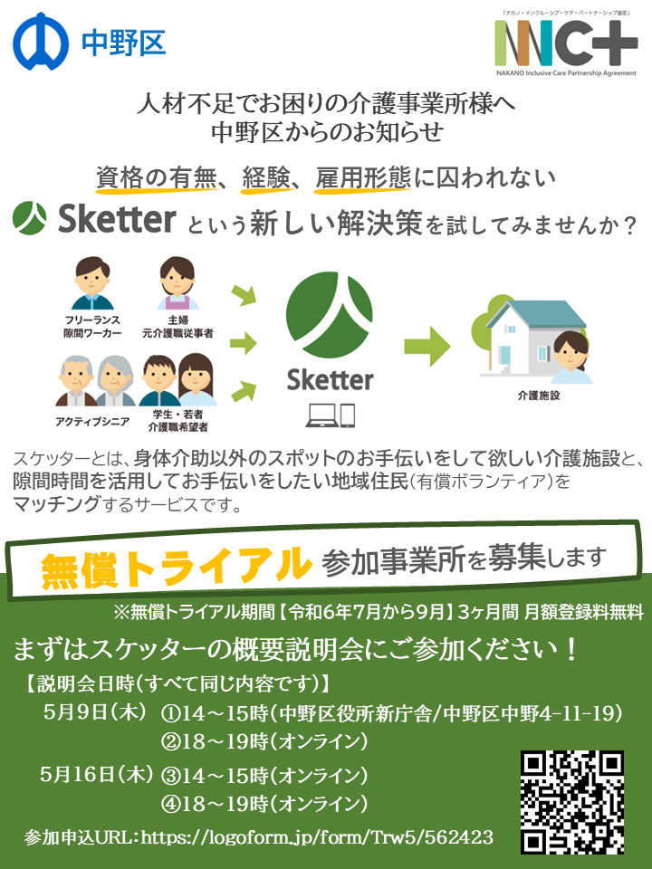 【スケッター説明会開催】無償トライアル参加希望の介護事業所募集!