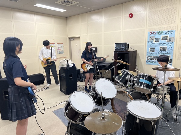 楽器を持っていない人でもギターやドラムの貸出で演奏することができます。楽器を持ち込んで練習できる児童館や防音室がある児童館もあります!