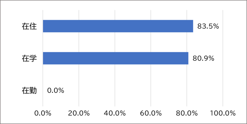 「在住」と回答した方が83.5%、「在学」と回答した方が80.9%でした。
