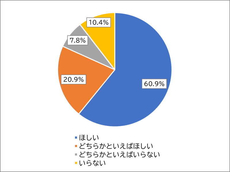 「ほしい」と回答した方が60.9%、「どちらかといえばほしい」と回答した方が20.9%でした。