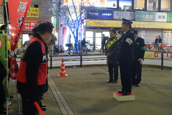 当日は、中野警察署や中野消防署、商店街の皆さんや防犯ボランティアの皆さんが集まり、街頭犯罪や悪質な客引きの防止、路上喫煙防止、火災の予防などを目的に繁華街を巡回しました。