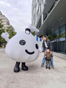 「ごみのんカーの積込実演」では、たくさんの方が集まり、説明を聞きながら積み込みの様子を真剣に見ていました。会場には「ごみのん」も登場し、子どもたちが握手したり写真を撮ったりと盛り上がりました。
