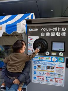 「ペットボトル自動回収機の実演」では、子どもたちも自動回収機にチャレンジ!「一般社団法人全国清涼飲料連合会によるパネル展示」では、自販機横に置かれているリサイクルボックスへの異物削減やペットボトルの飲み残し削減を呼びかけました。クイズラリーのポイントだったこともあり、多くの方に立ち寄っていただきました。