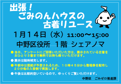 令和8年1月14日(水曜日)「出張!ごみのんハウスの古着リユース」を開催します!
