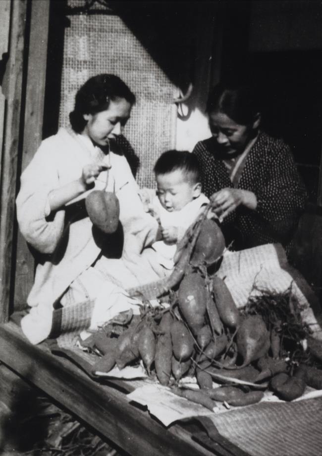 | 食糧難のため庭でさつまいもを作った | |