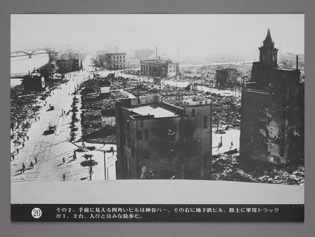 (画像:123KB) | 果てしなき瓦礫の町の東京。開戦時約700万人の人口は、130回もの火の雨にさらされ、敗戦時には250万人に減少した。 |