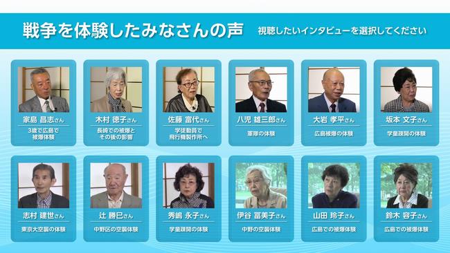 (平和の語り部12名の証言映像)
