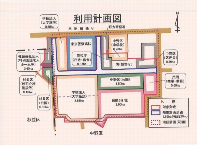 平成17年(2005年)8月に、財務省、中野区、杉並区、東京都の四者で協議会を設置し、跡地の処分等に関する協議等を行いました。