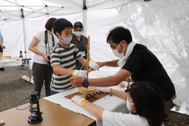 都内の62全区市町村において採火が実施され、中野区では中野区立歴史民俗資料館を会場に、中野区内に在住・在学の小・中学生とその保護者の10組20名を募集してマイギリ式による採火を行いました。