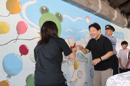 野方駅高架下で壁画作成報告会が行われました。野方駅の高架下で落書きが絶えなかったことを受け、落書きを消去し、地元の小中学生らが壁画を制作しました。